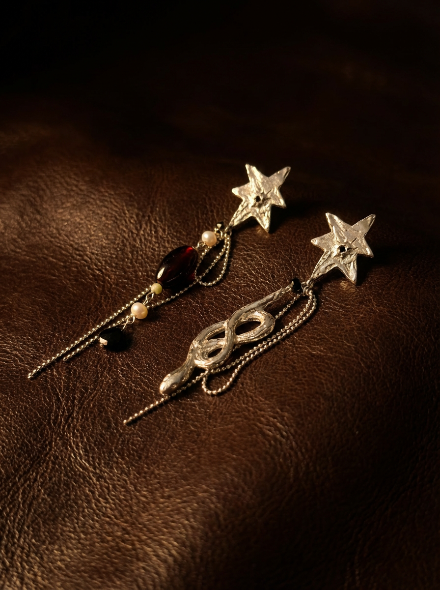 En Neithéa, cada joya es un cruce de energías que dialogan. La serpiente representa la renovación: ciclos que se reinventan sin dejar atrás lo esencial. Las estrellas guardan una luz antigua que nos recuerda la inmensidad del universo y esa fuerza que permanece más allá del tiempo.