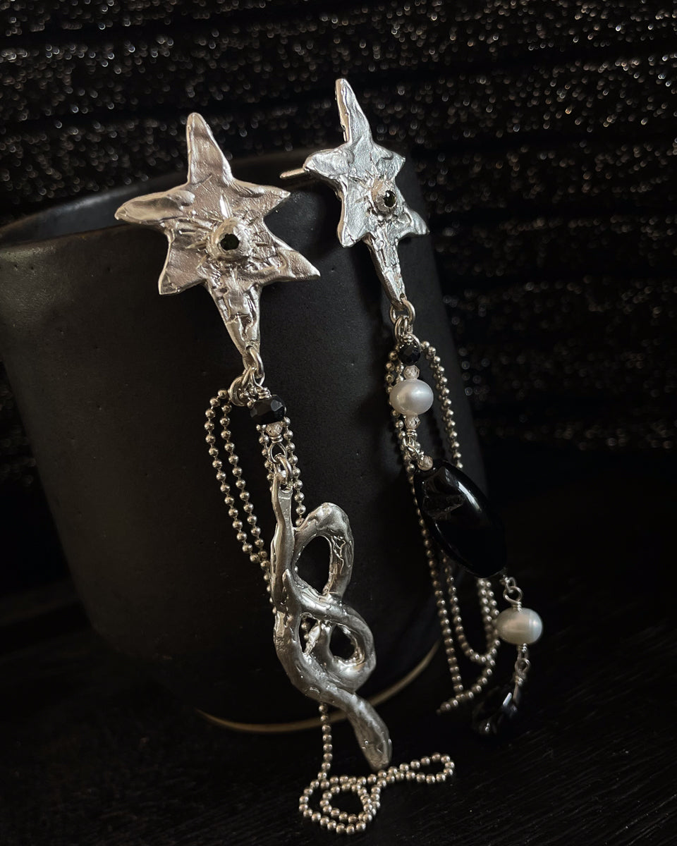 Aros Estrella bruta con cascada de piedras, cadenas y serpiente