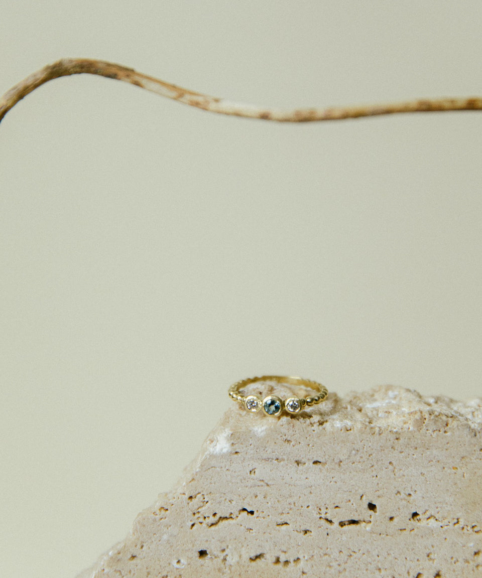Anillo Mini Tricillo Bolitas Oro 18K