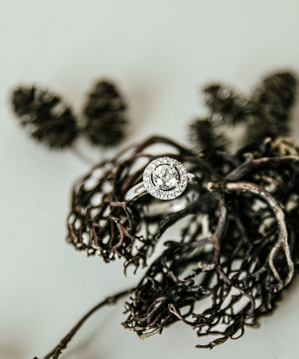 Anillo Solitario de diamante con Halo