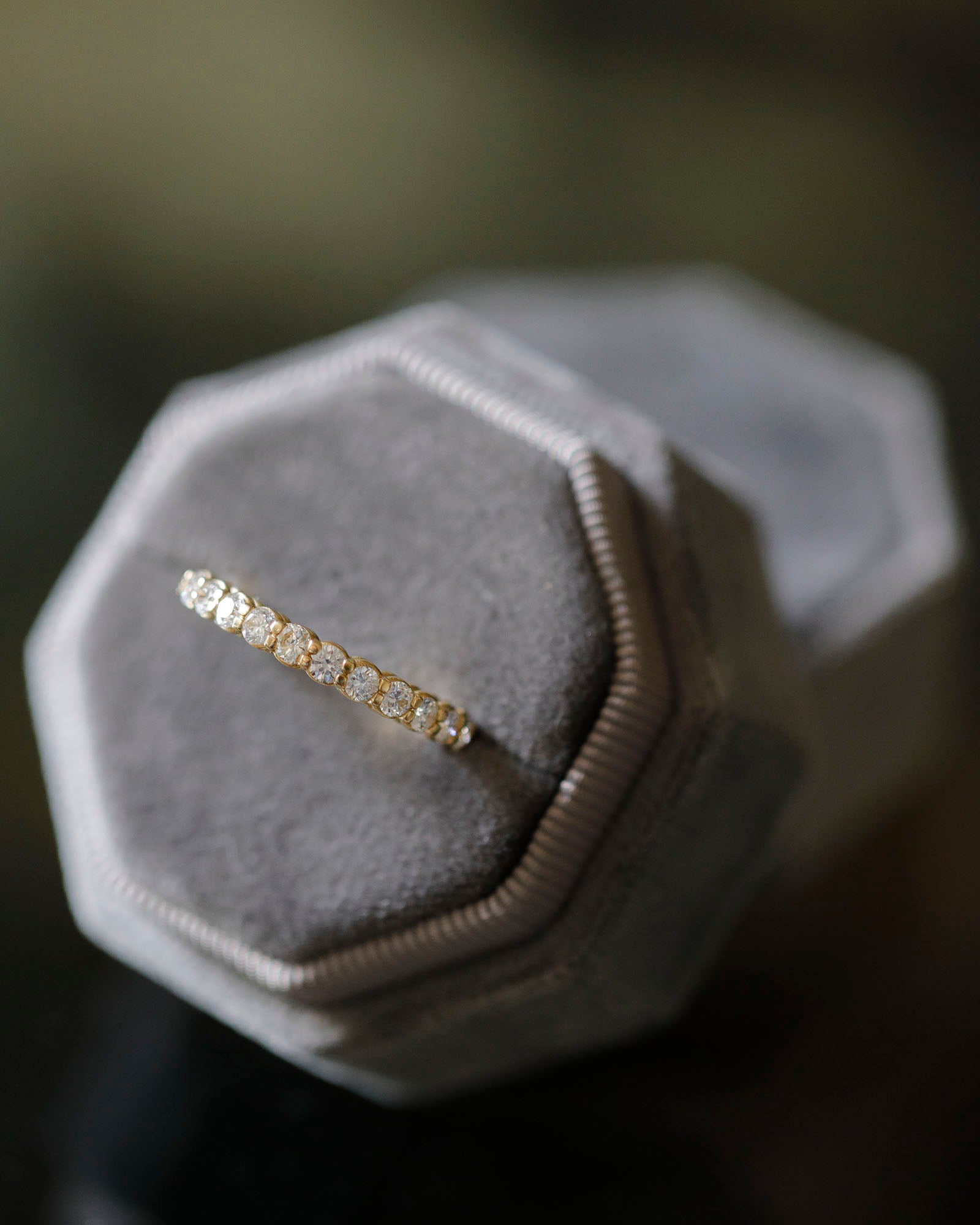 Anillo medio cintillo de brillantes de 1 pto en oro 18K, platino u oro blanco.