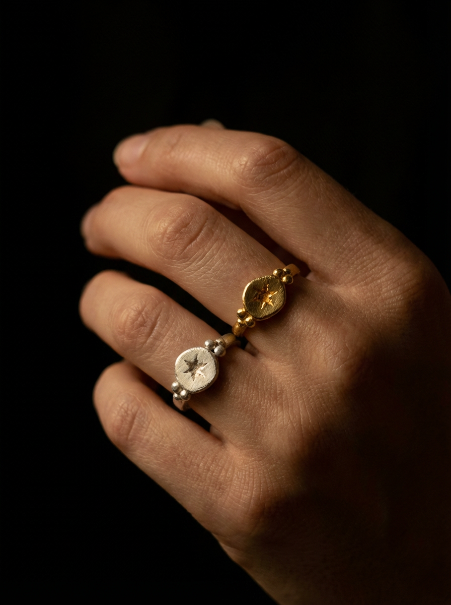 Cada joya de la colección Neithéa es un encuentro de energías. La serpiente encarna la renovación: nuevos comienzos y ciclos que se transforman sin perder su esencia. Las estrellas, en cambio, son una memoria de luz que nos conecta con la belleza del universo infinito y con una fuerza que trasciende.