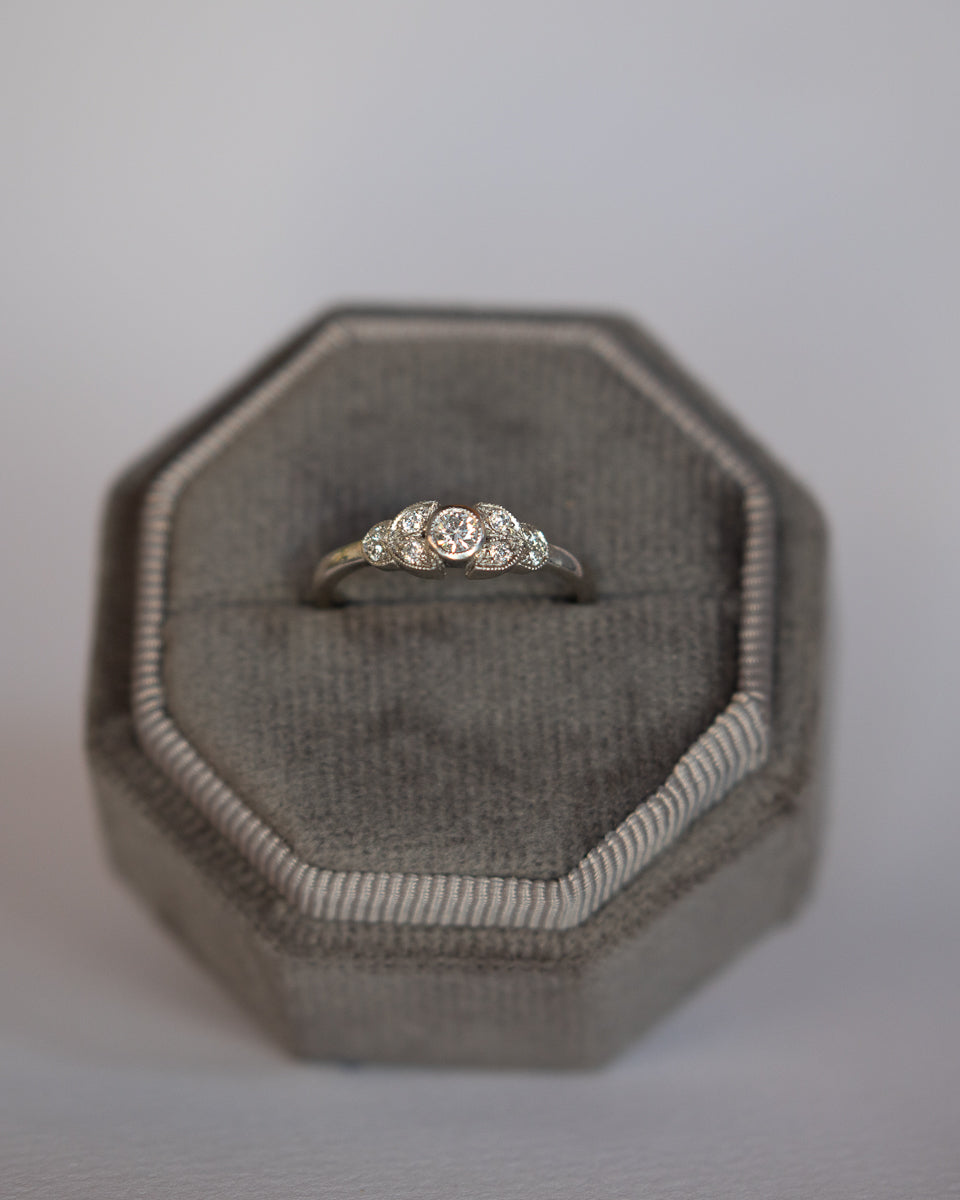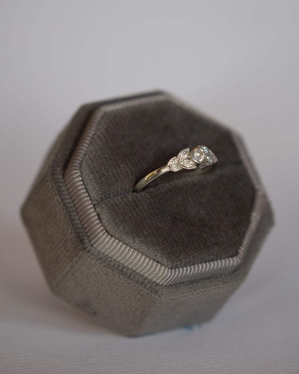 Un clásico diseño de Fran Vega Joyas, el anillo Natalia es un anillo muy delicado, elegante y con el toque orgánico de hojas sutiles que acompañan en centro, siendo un elemento característico de la marca.